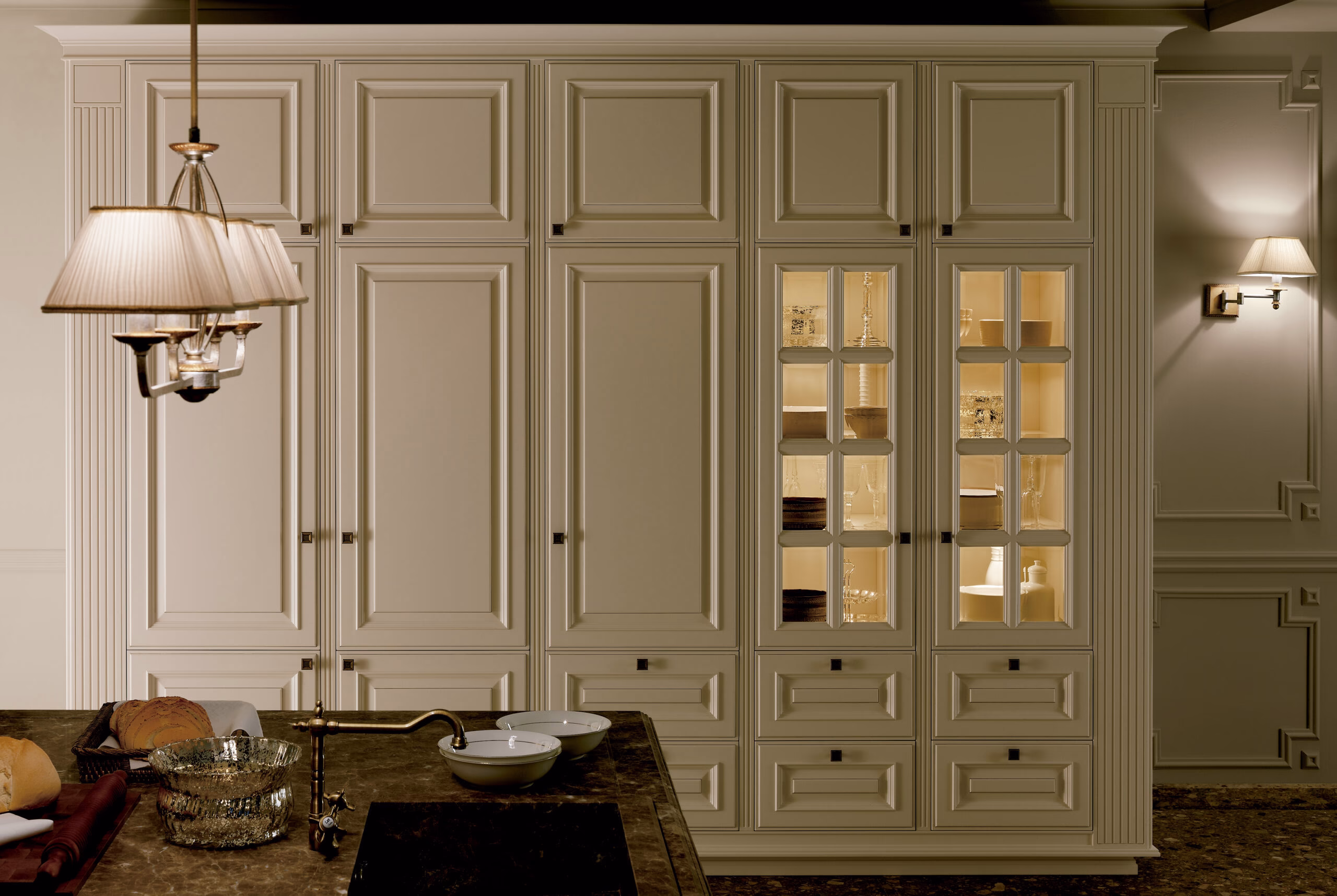 The Britania kitchen represents the highest expression of classicism, masterfully reinterpreted with close attention to detail. Gucanna, a timeless neutral, is highlighted through framed glass cabinets crafted with refined design that brings character and distinction.